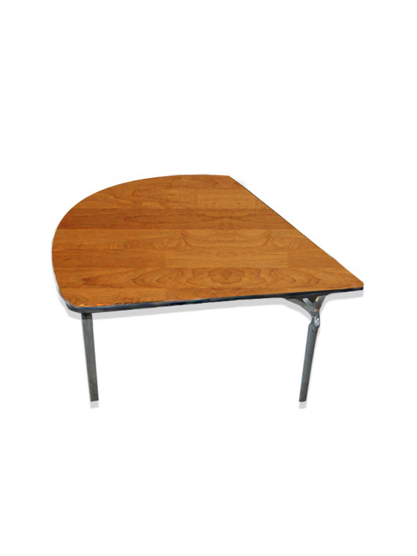 The 1/4 round table will add flare to your party. Perfect as food service table. Use a 90" round linen for a floor length look.